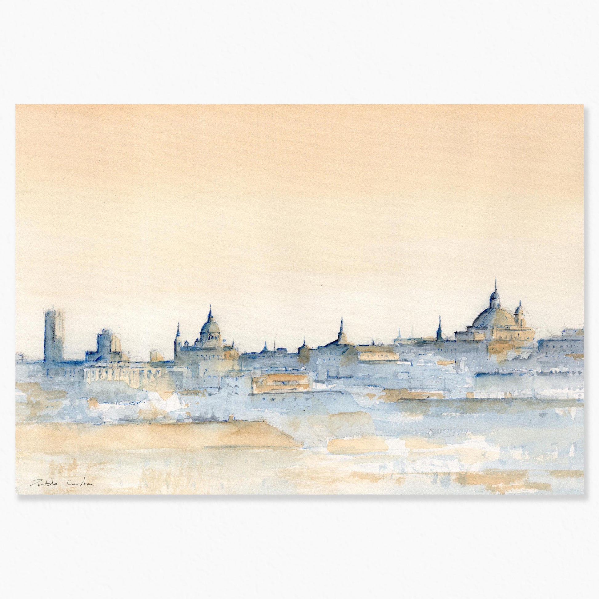 Esta impresión fine art nace de una acuarela original de Madrid pintada a mano, inspirada en un lugar significativo de la ciudad. La obra busca transmitir su atmósfera única —la luz, el movimiento y la esencia del entorno— sin recurrir a una representación literal.